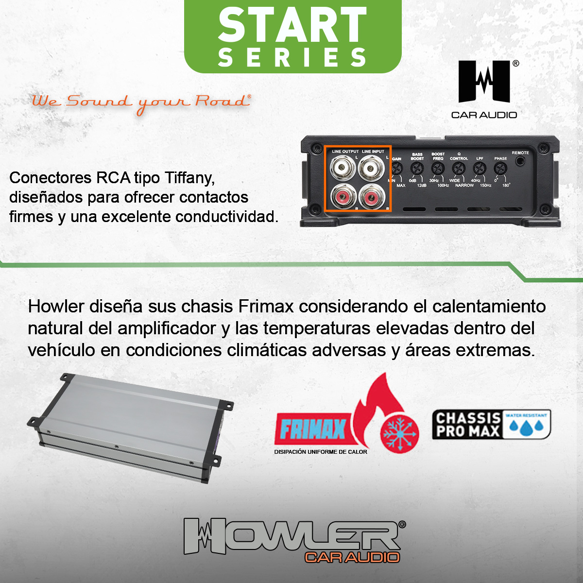 Los conectores de entrada RCA tipo Tiffany , son conectores de audio de alta calidad, están fabricados para un contacto seguro y mejorar la conductividad, están sujetos con tuerca hexagonal y montados en el panel del chasis. Esto previene ruidos indeseados y asegura una calidad de sonido superior. Este es el compromiso de Howler para que puedas disfrutar al máximo de tu música favorita.