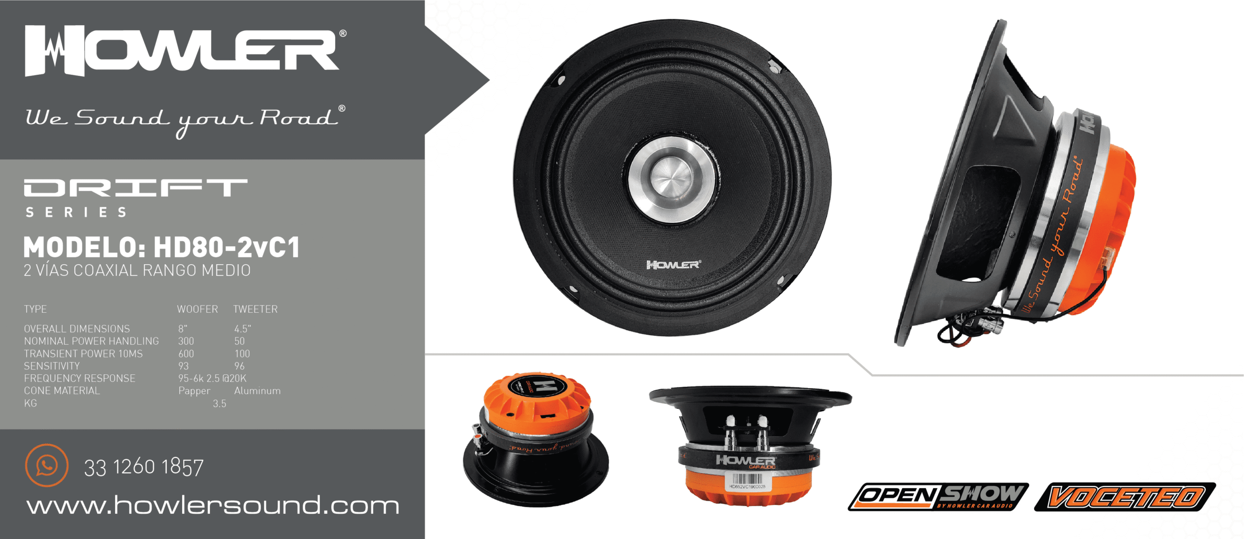 Howler presenta su nueva línea de altavoces coaxiales de 2 vías, diseñados para ofrecer una reproducción precisa de graves y agudos. Los altavoces coaxiales permiten que las unidades de los diferentes conductores emitan sonido desde el mismo punto o eje, lo que mejora la calidad del sonido y ahorra espacio en la instalación.