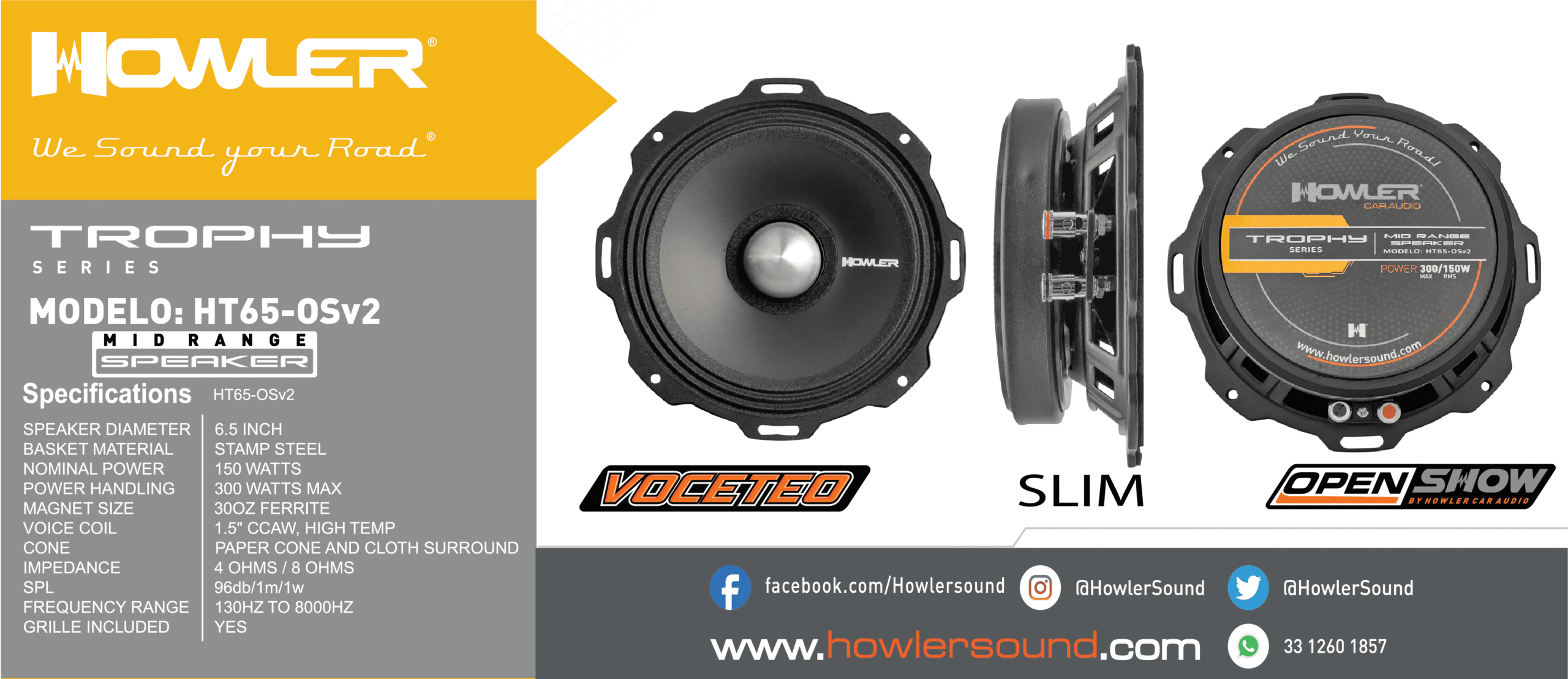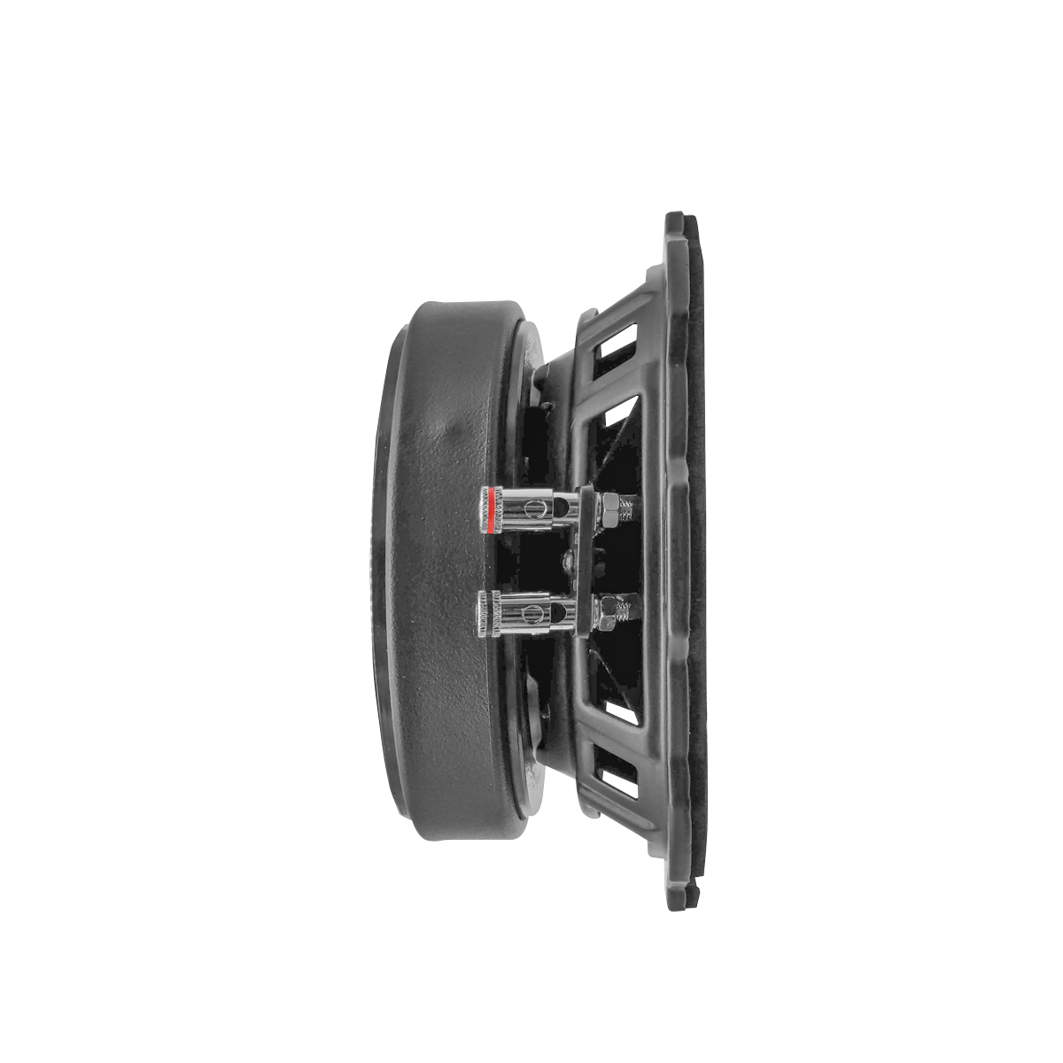 Impedancia de 8 Ohms. Cuenta con un potente rango medio en un tamaño de profundidad slim, diseñado para ofrecer un sonido fuerte, claro y contundente. Sus frecuencias están optimizadas para una reproducción sonora de alta calidad, ideal para sistemas de audio que requieren presencia y definición en el rango medio.
