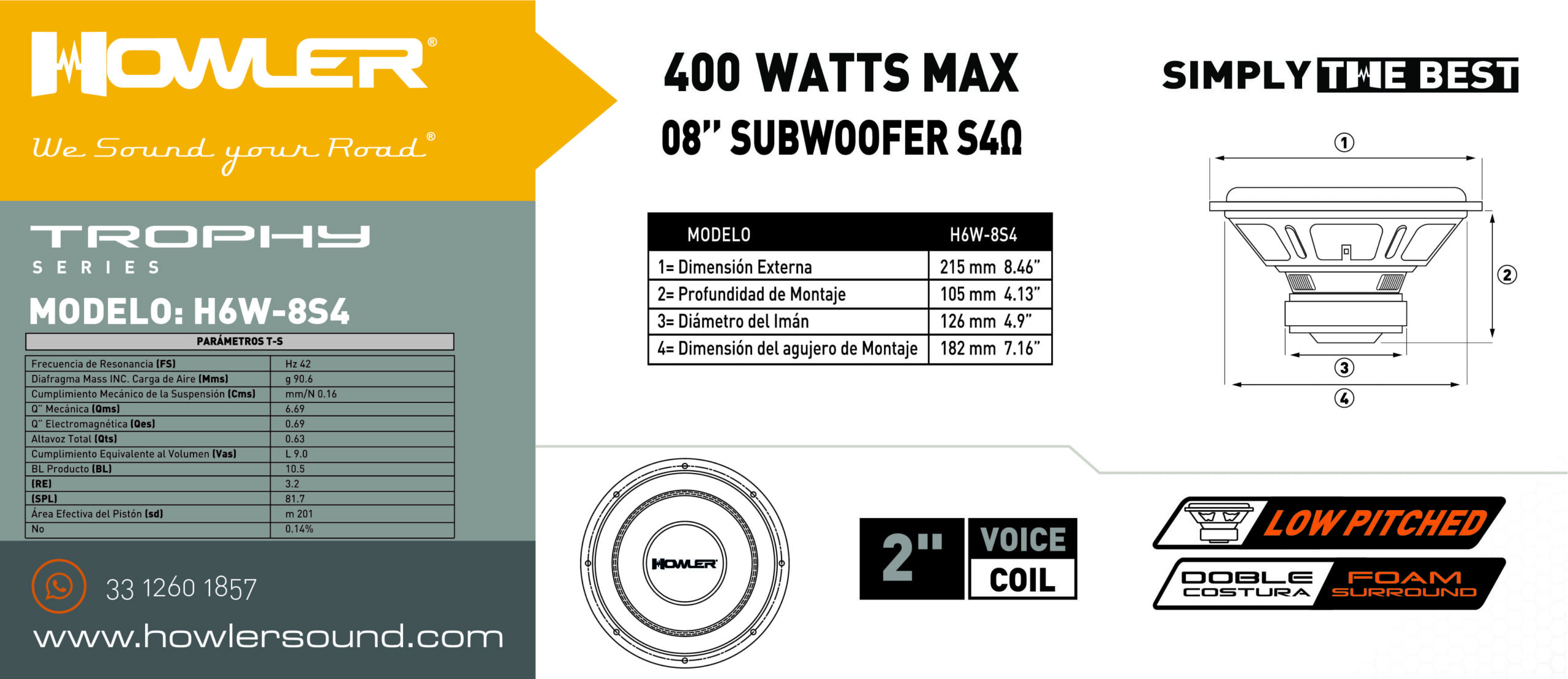 Rango Medio Subwoofer, Modelo: H6W-8S4