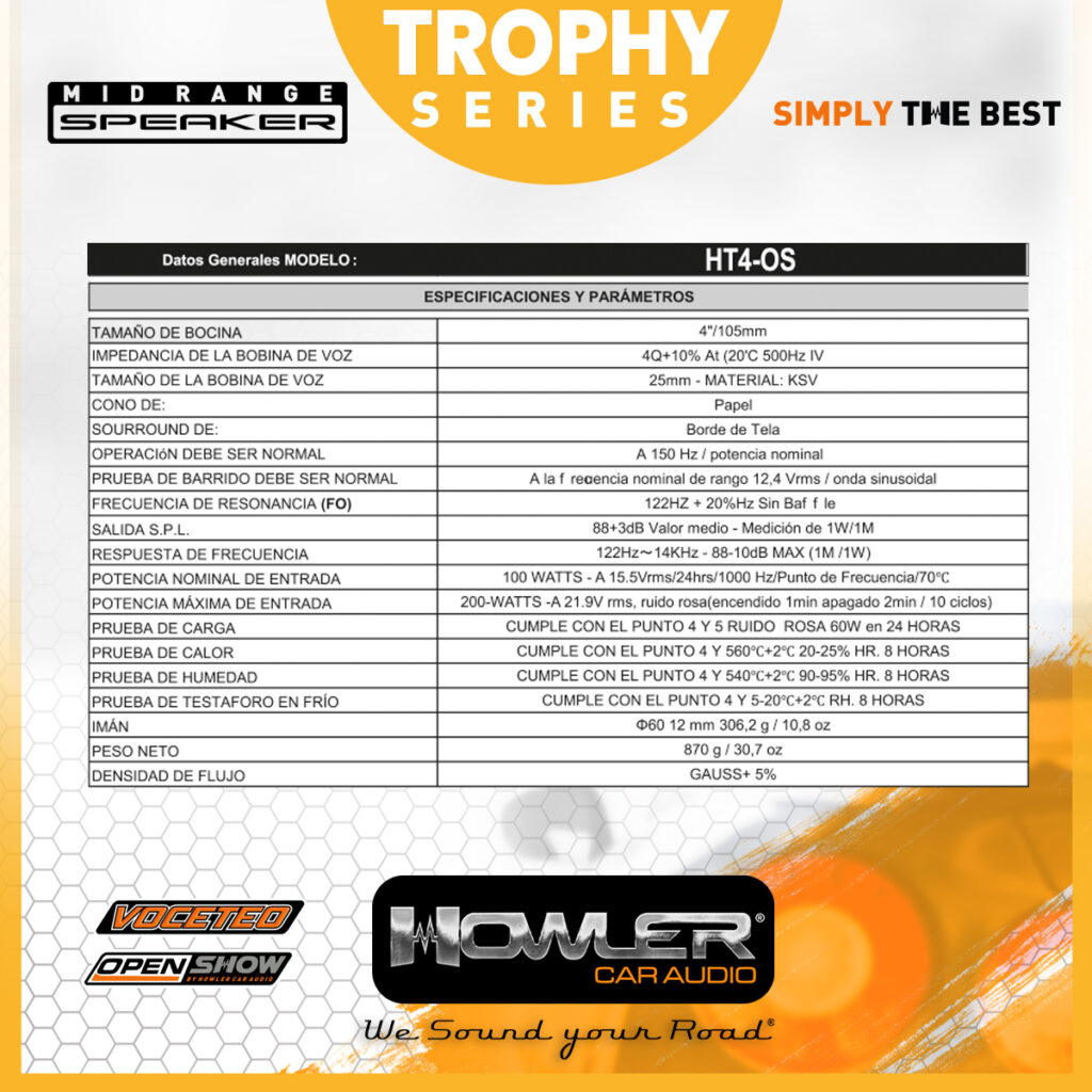Impecable reproducción de sonido, estos altavoces de 4 pulgadas incorporan una bobina de voz de cobre KSV , diseñados para proporcionar una experiencia auditiva superior”. (Precio pieza)