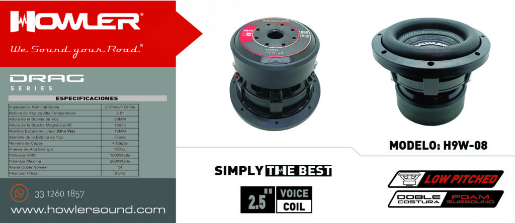 SUBWOOFER 8″ BOBINA 2.5″- Impedancia Nominal D4Ω – 2000w Max 1000w Rms
